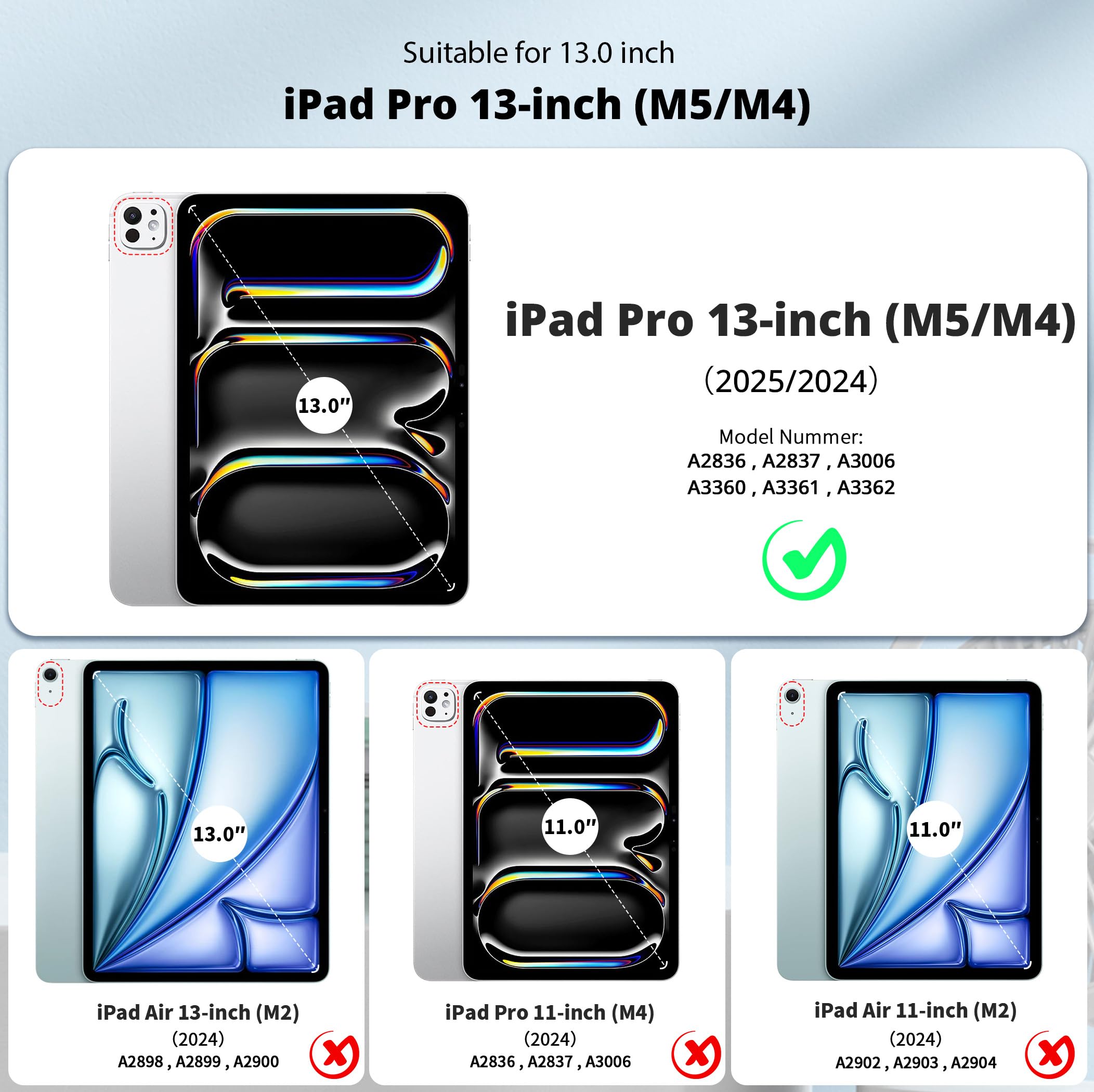 • Kompatibel Tablet --- Kompatibel mit iPad Pro 13 Zoll M4 (2024) A2925 A2926, präzise Ausschnitte konzipiert. NICHT für andere iPad Modelle.